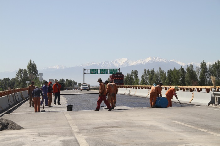 G30线 桥面铺装处治现场(涂刷防水层)