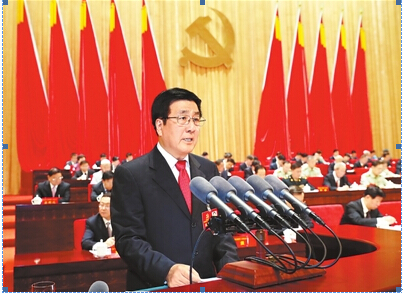 同志们,使命需要担当,实干成就未来。让我们更加紧密地团结在以习近平同志为核心的党中央周围,高举中国特色社会主义伟大旗帜,大力弘扬“人一之我十之、人十之我百之”的甘肃精神,万众一心,奋发进取,努力用智慧和汗水创造无愧于历史、无愧于时代、无愧于人民的业绩,为加快建设经济发展、山川秀美、民族团结、社会和谐的幸福美好新甘肃而努力奋斗!