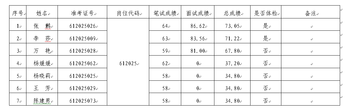 备注:总成绩=笔试成绩*60%+面试成绩*40%